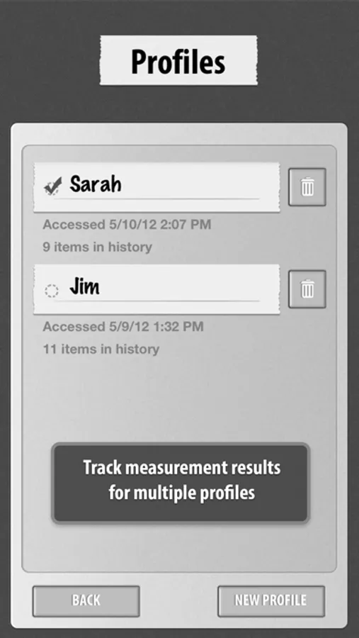 Cardiograph is perfectly tailored to allow multiple people to use the app on a shared device. You can create profiles for each of your family members or friends, and each of them has their own individual measurement history.