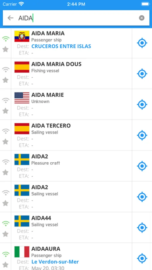 * Search vessel database
