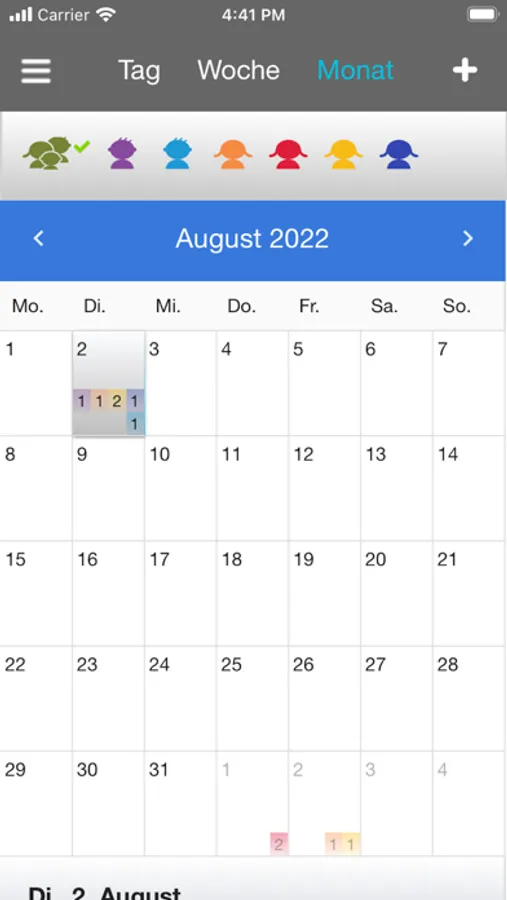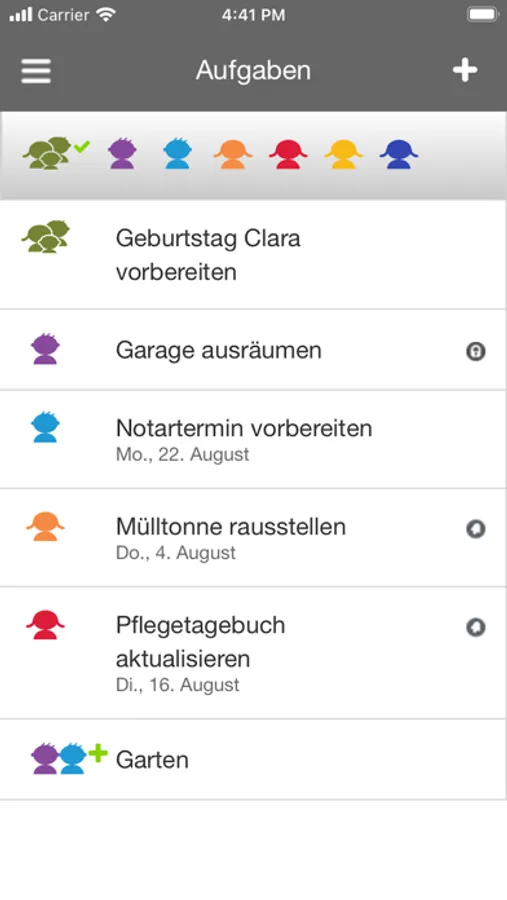 Schluss mit Zettelwirtschaft und über unzählige Apps verstreute Einträge. Das Family Cockpit vereint acht verschiedene Funktionen in einer einzigen Anwendung. Ladet einfach alle ein, die euer Betreuungsnetzwerk unterstützen und organisiert euren Alltag gemeinsam. Lasst euch an Termine erinnern, verteilt die Aufgaben innerhalb der Familie, plant gemeinsam eure Einkäufe, organisiert die Betreuung von Oma oder Opa oder checkt die Planung des Tages auf der Pinnwand. Ob über Desktop oder App, die Einträge sind für alle jederzeit verfügbar und immer auf dem neusten Stand. Durch Farben und Symbole wissen alle sofort, wer wann was zu tun hat.