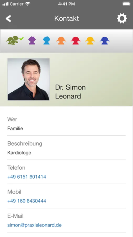 Eure gemeinsamen Kontakte wie Ärzte, Nachbarn oder Freunde an einem Ort, nach Gruppen sortiert und mit der Suchfunktion schnell zu finden. Besonders wichtige Nummern könnt ihr als Notfallnummern separat anzeigen lassen und direkt anwählen.