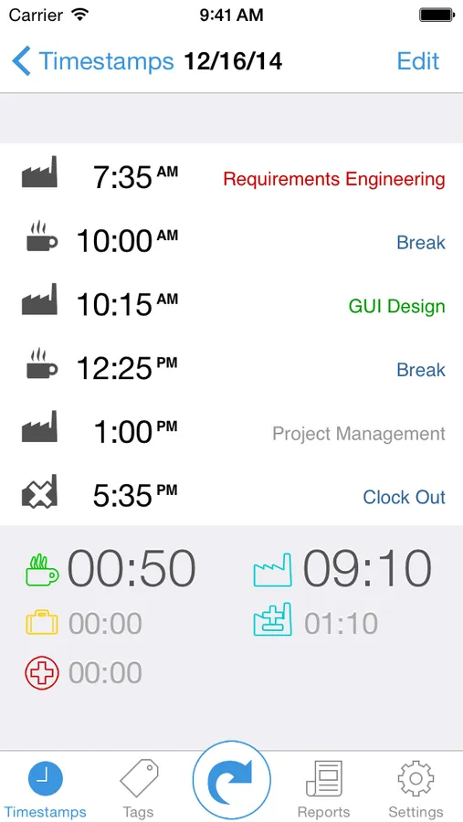 In the weekly and daily time stamp view, TimeStamps provides small statistics for a better overview. "How much overtime I've done this week?", "How long have I been on a business trip?" - The statistics provide the kind of information you want.