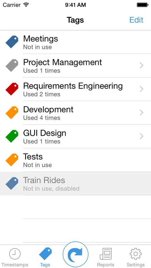 Each time stamp can be assigned a tag from a self-created list. Each tag can of course be changed later, hidden, modified in order or deleted. Coming soon is also a new type of export, who has the ability to choose specific tags.