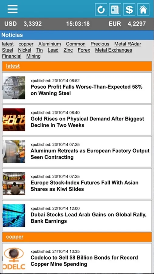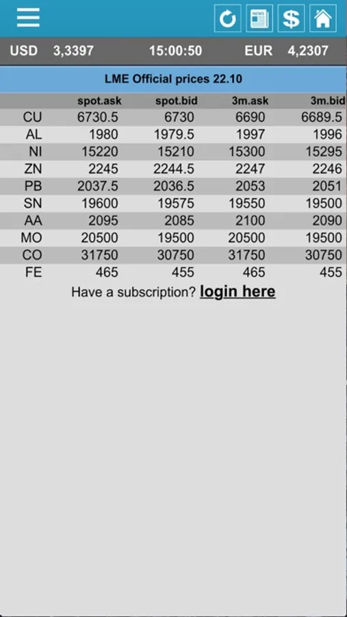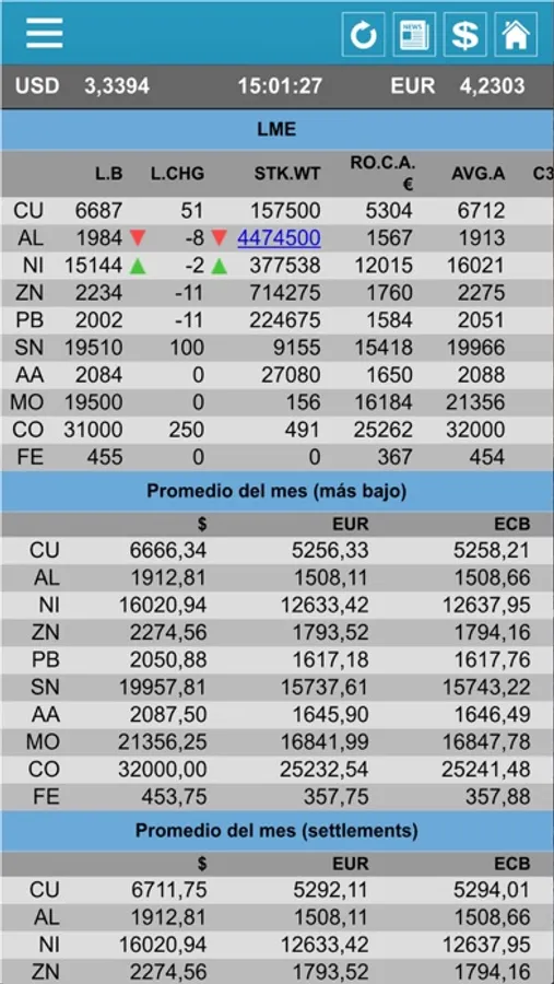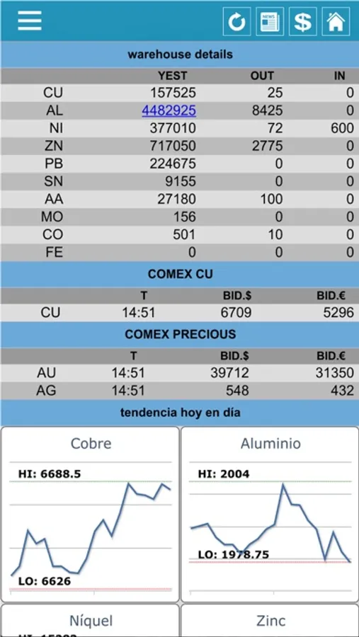 Information and immediate access to real-time metal prices for the leading exchanges: The LME (London Metal Exchange), SHFE and the Comex.
