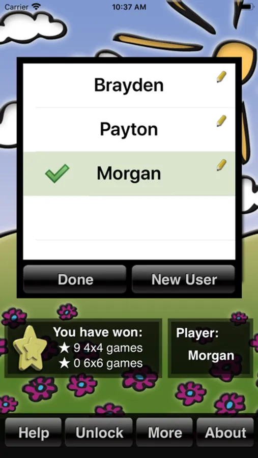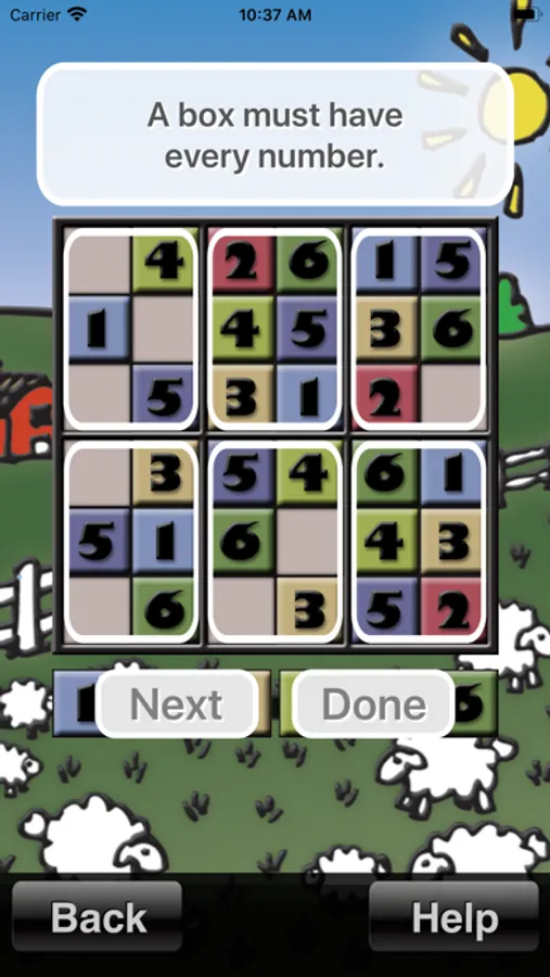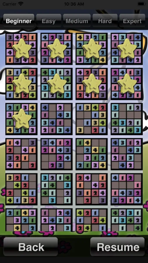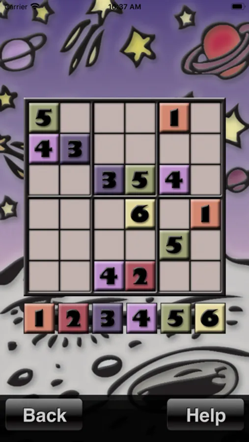 Ten puzzle levels cover a huge range of difficulties, from the easiest 4x4 level, which is perfect for younger kids, to the expert 6x6 level which is almost as hard as regular sudoku. This means the game can grow with you for a long time while you progress. Once you have mastered all the levels in this app, you are ready to graduate to regular sudoku!