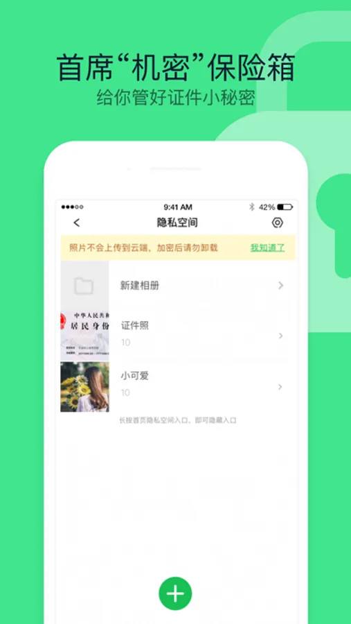 【隐私空间】通过指纹或手势加密存储照片、视频,确保隐私安全。