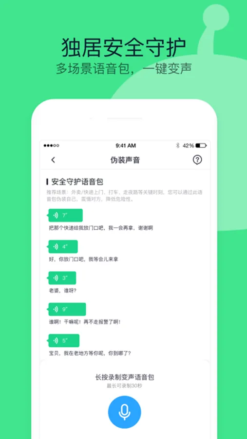 【室内守护】使用伪装声音改变性别,避开陌生人敲门安全隐患;使用伪装来电保护隐私,隐瞒独身