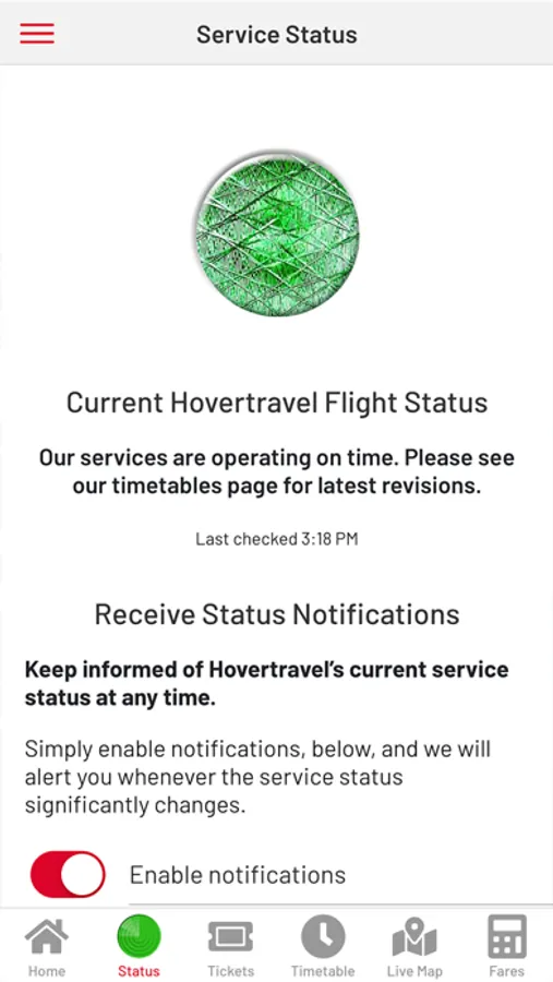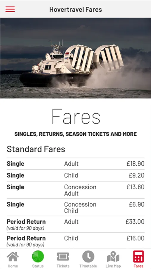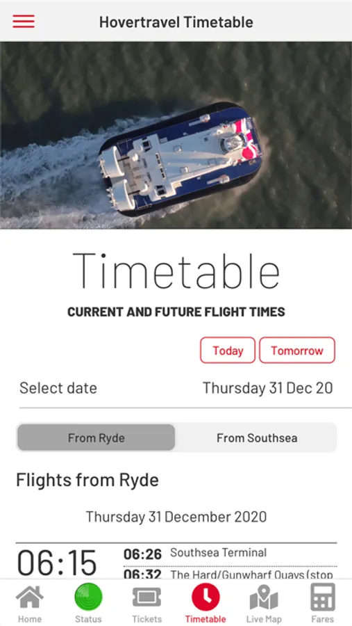 Use this App to check up-to-date timetables, view the current positions of Hovertravel’s vessels and the connecting Hoverbus (both with live tracking and minute-by-minute updates), view the current flight status of Hovertravel services (including instant notifications of any change in service-status), check fares, see the latest special offers, and find out more about the bus and rail connections available from Ryde, Isle of Wight and Portsmouth/Southsea.