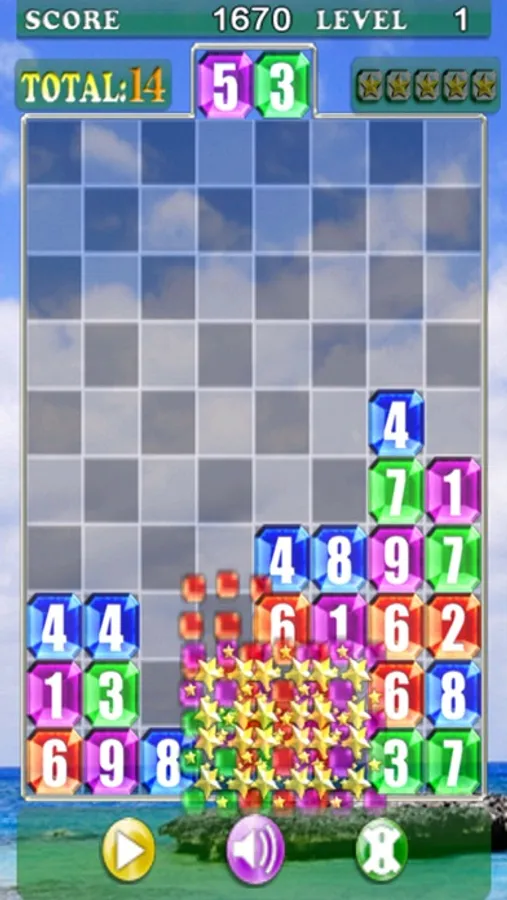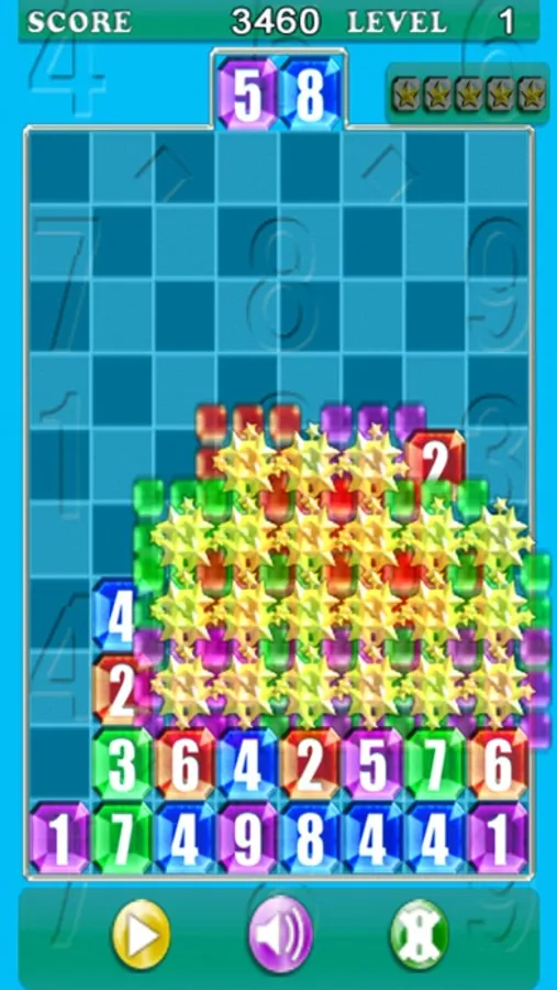 If the sum of three numbers on stacked Blocks is '15 ' ,blocks will be erased again.