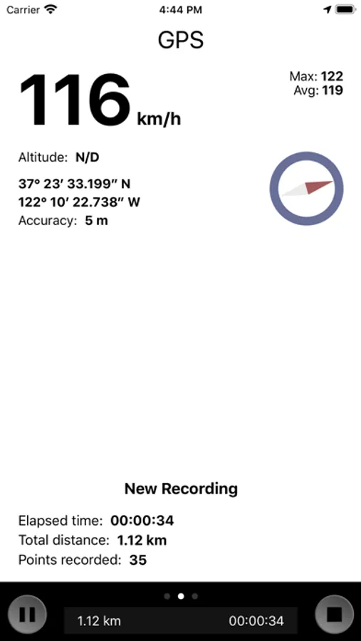 Follow your trip on the map in real time, or use the detailed view with the current speed, average speed, altitude, traveled distance, position accuracy, direction, and more!