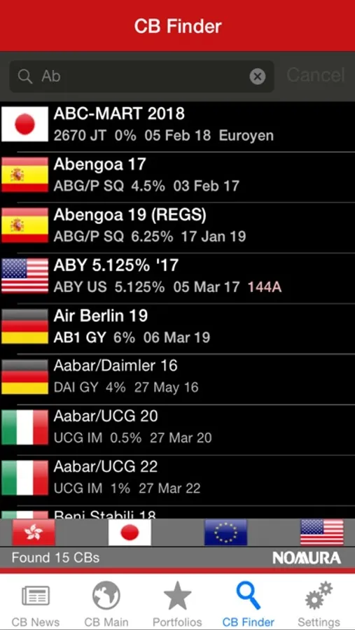 Nomura iCB is available for the iPhone and optimized for the iPad. It leverages off Nomura's unique truly global approach to convertibles in order to provide live and comprehensive coverage of names in the Asian, European, Japanese and US convertible markets.