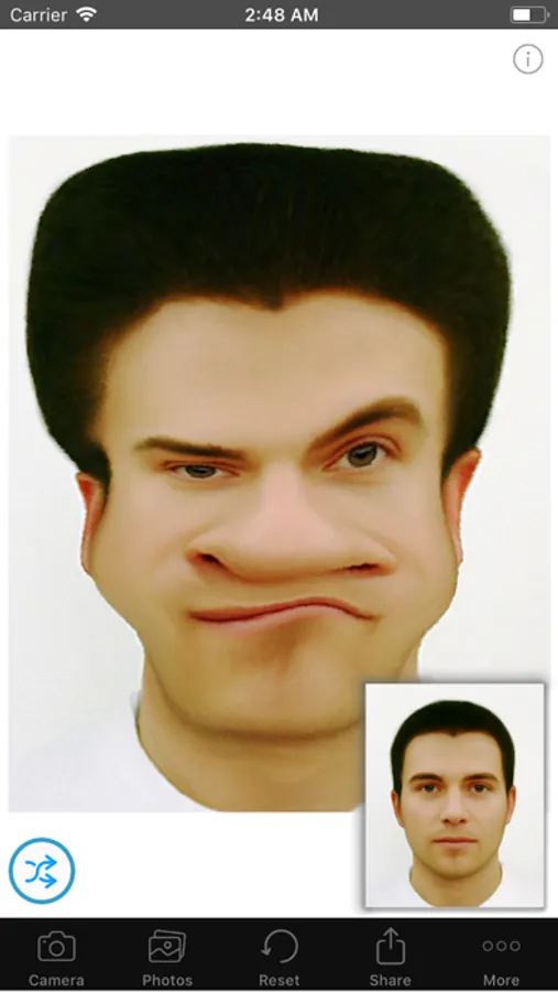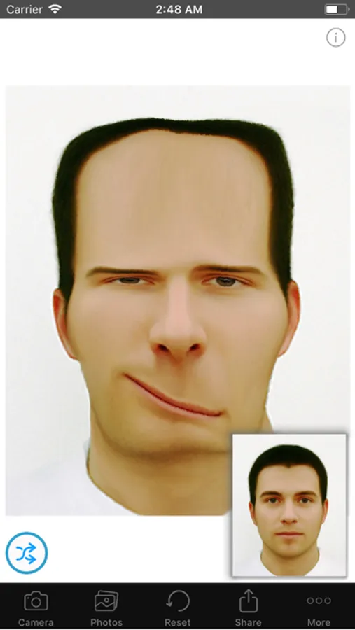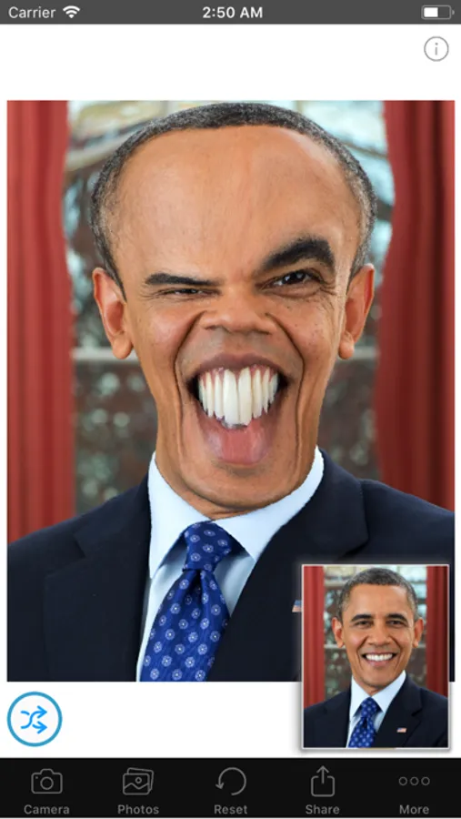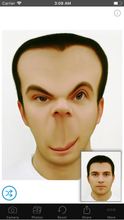 Take a picture using the camera, or choose it from your pictures and warp it easily by moving your finger on the screen or tap on random button.