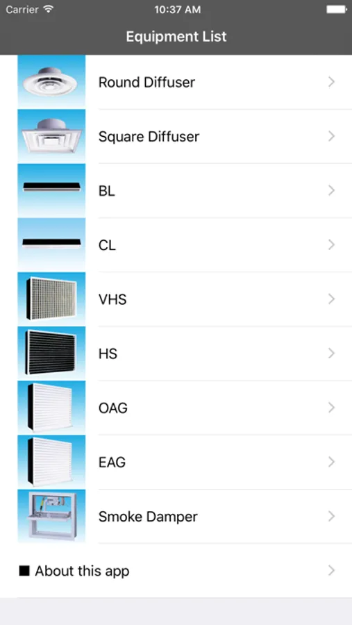 (Round Diffuser,Square Diffuser,BL,CL,VHS,HS,OAG,EAG,Smoke Damper)
