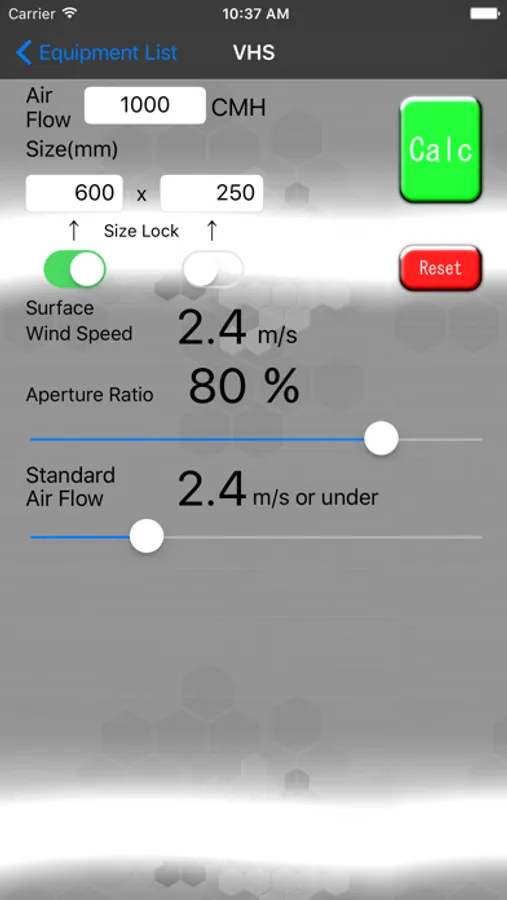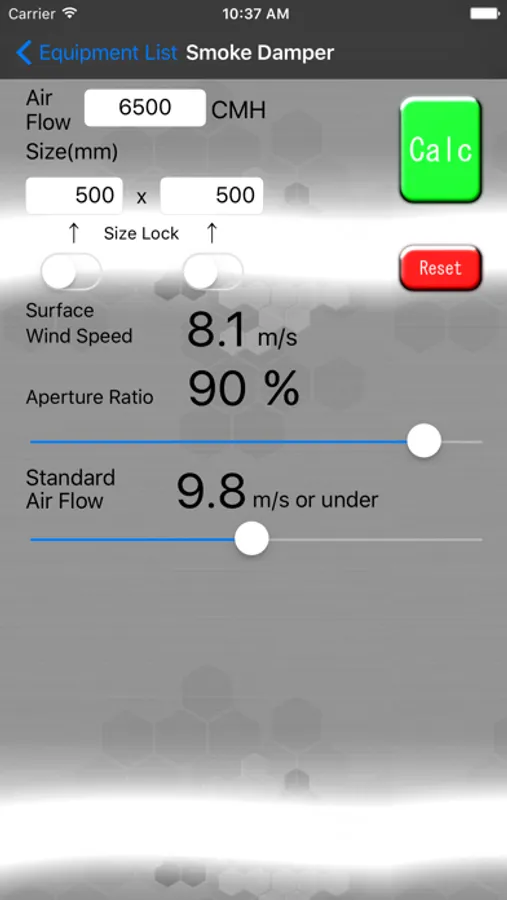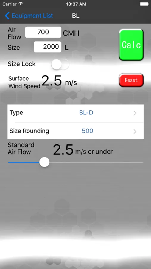 It is an easy operation only of the choice of the apparatus to be examined from the list, the input of the amount of the wind, and doing the calculation button the tap.