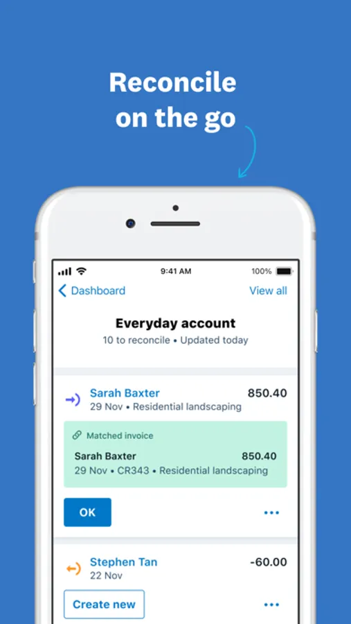 Reconcile from anywhere - Good bookkeeping habits have been made easy. Smart matches, rules and suggestions makes reconciling your business transactions from anywhere with a few simple clicks.