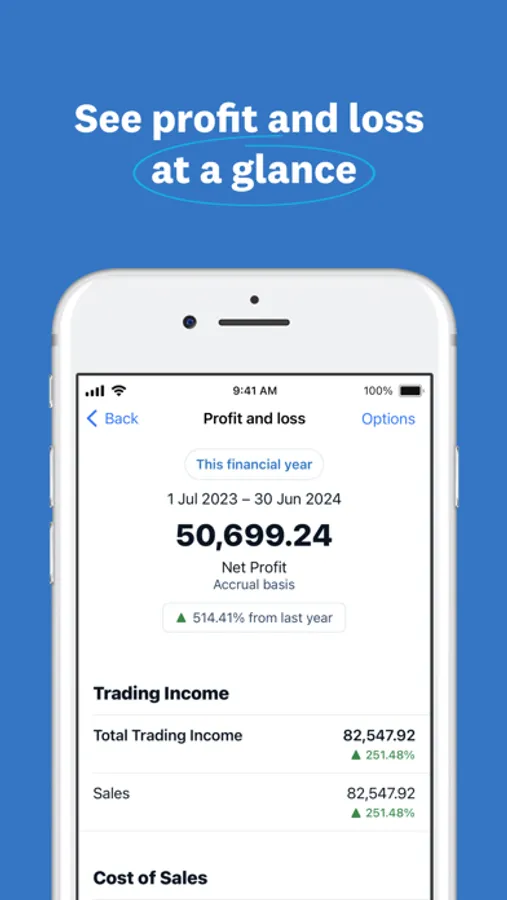Keep track of cash flow- View summaries of outstanding bills and invoices to see what’s owed. Plus a flexible profit and loss report which can be viewed on a cash or accrual basis helps you keep your finger on your business’ financial health.