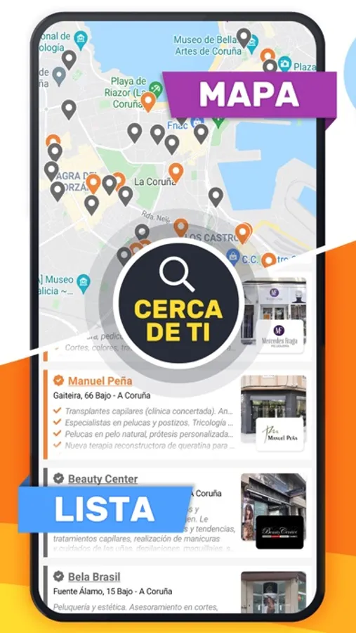 ¿Buscas un sitio para comer?, ¿una farmacia de guardia?, ¿un cajero quizás?, ¿necesitas algo cerca de ti? ¡Más de 140.000 negocios y lugares de toda Galicia en tu bolsillo!.
