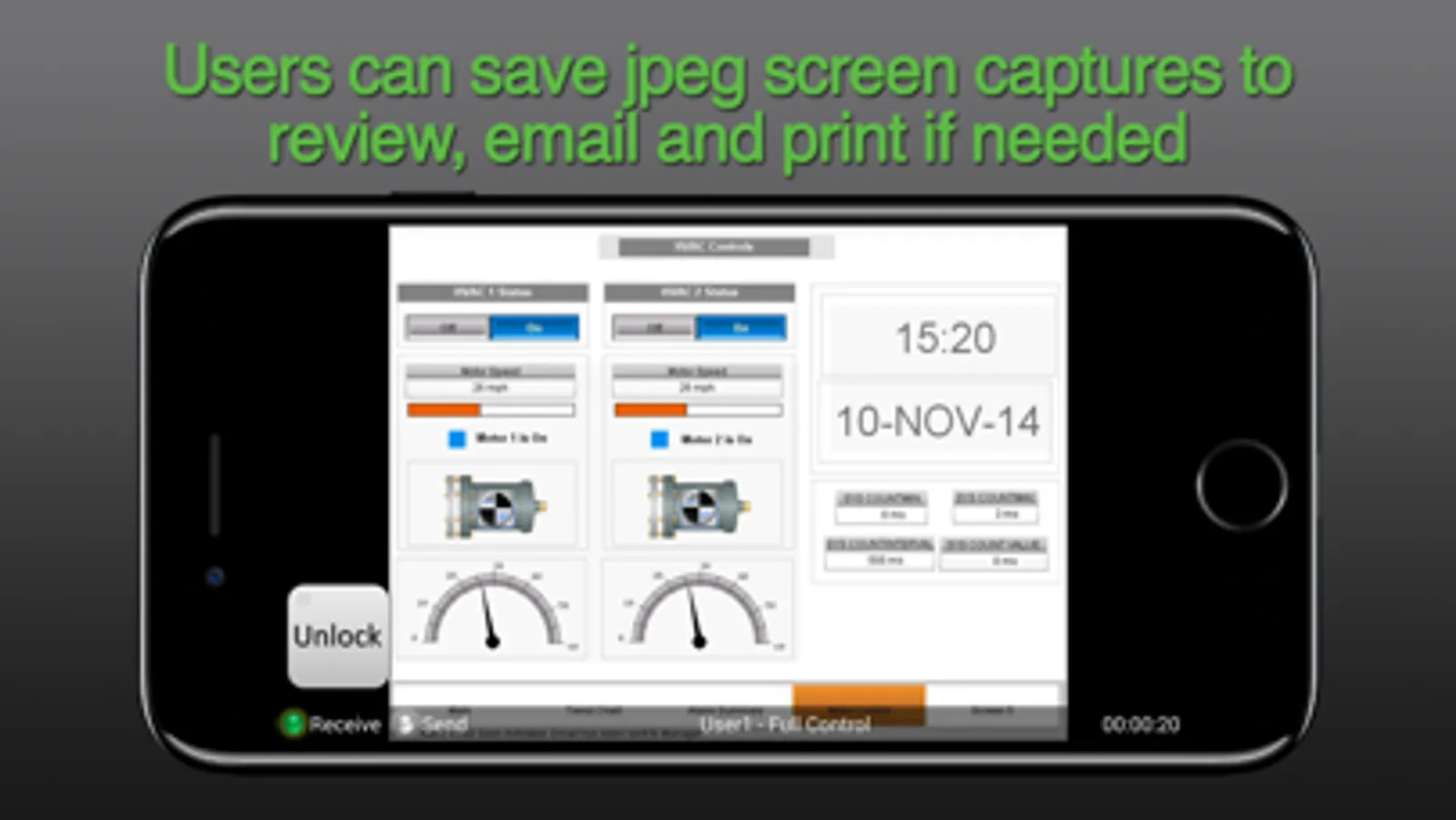 - Users can save jpeg screen captures to review, email and print if needed