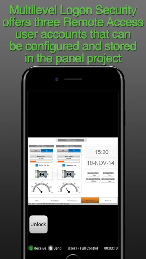 - Multilevel Access Control allows each account to be configured in one of the following levels of access. Full control access, View only access, View and Screen change only access