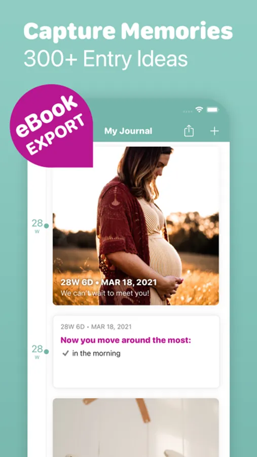 • Pregnancy Journal with FREE PDF eBook to view or print: Capture belly photos and all your special pregnancy thoughts and moments – includes over 300 fun entry ideas!