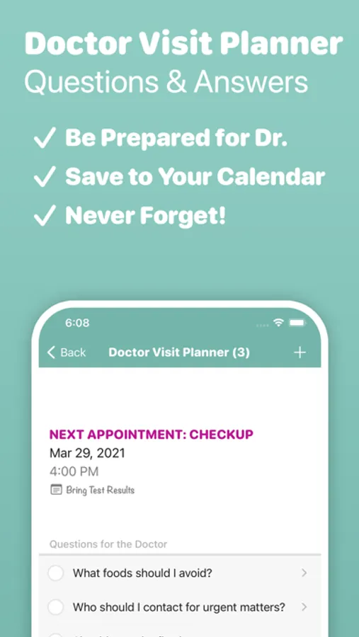 • Health Tracker – No risk and high-risk mamas need to monitor their health. Easily manage your symptoms, medications, vitamins and vitals