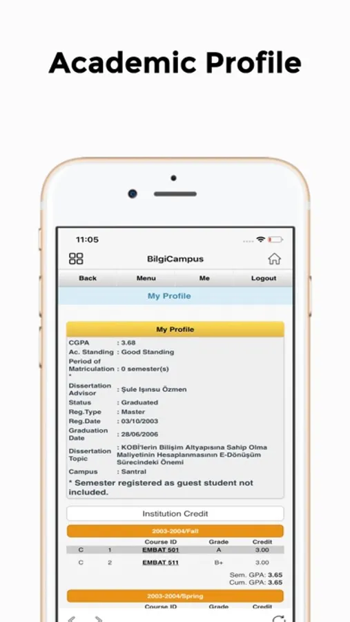 BilgiCampus is the official application of Istanbul Bilgi University Student Information System (SIS). With BilgiCampus students will have access to the following SIS functions.