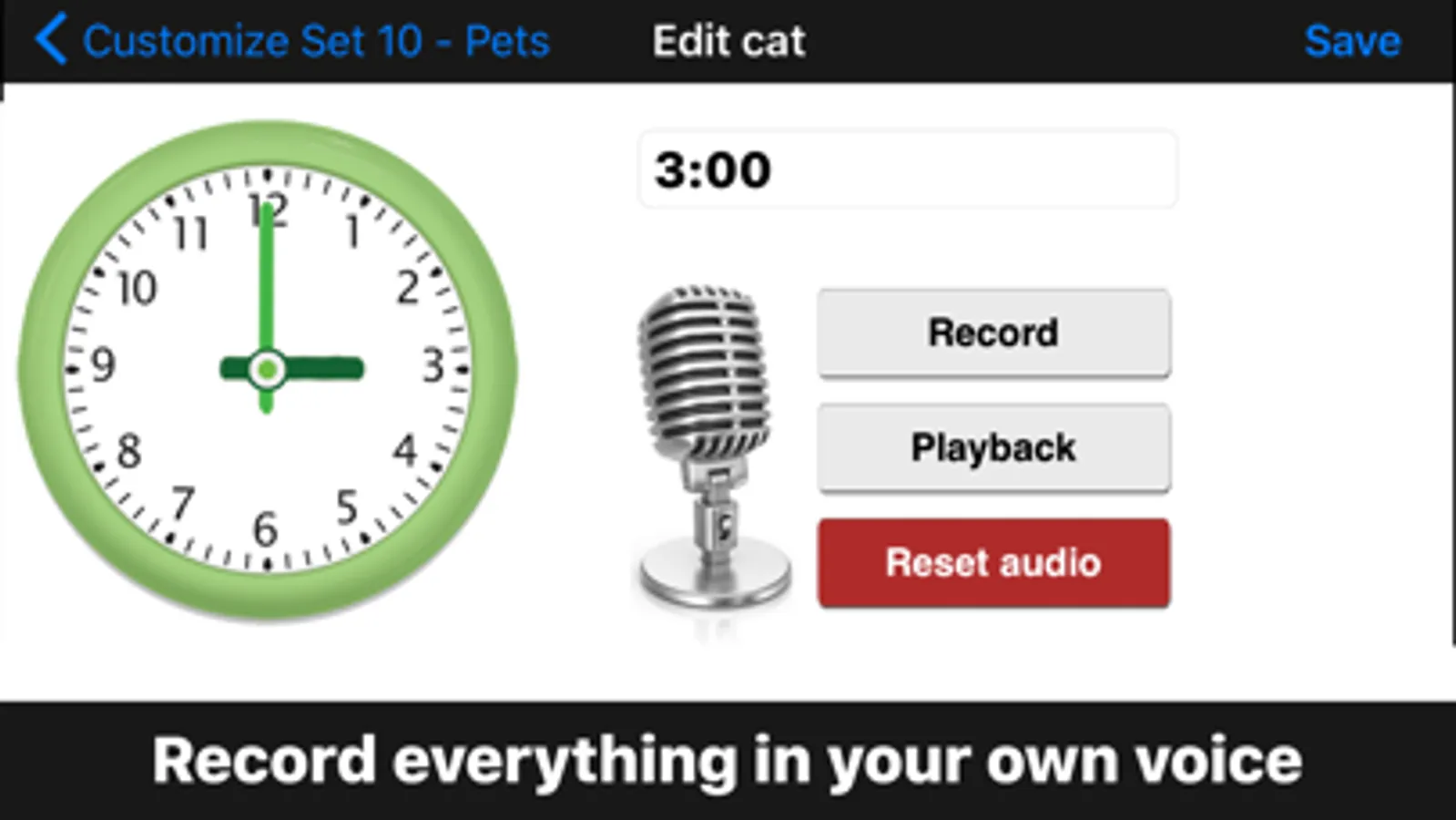 • Add your own voice - now your kid can learn everything in mommy's or daddy's voice