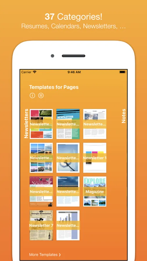 Templates for Pages (Nobody) is an amazing add-on for Apple's Pages app. It provides 290 templates for Pages in 37 categories.