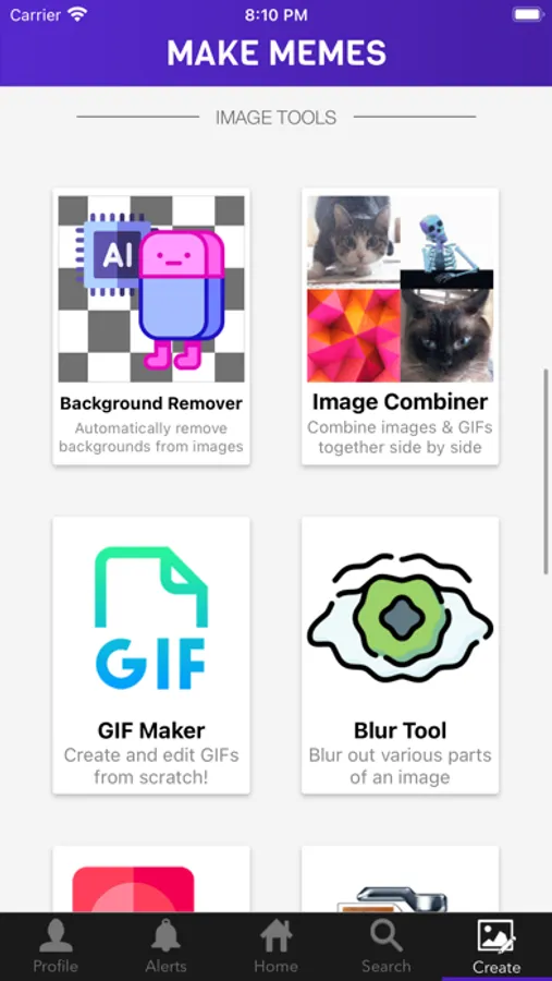 • Meme Maker - Add those classic bold captions to the top and bottom of any photo or GIF.