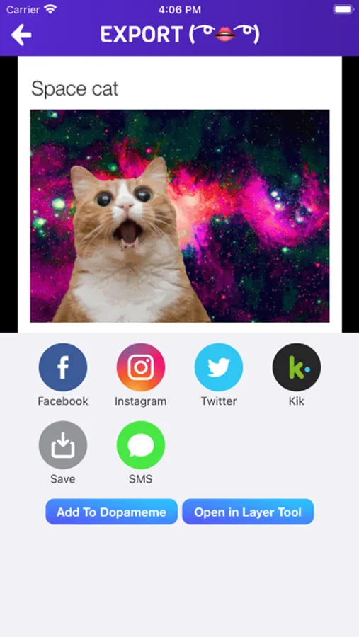 Dopameme is an app for making memes out of photos, videos & GIFs. We have a built-in Meme Maker to caption literally anything. We don't even add watermarks! Not to mention we have an unlimited supply of memes on our popular page. Sounds like a good time to me.