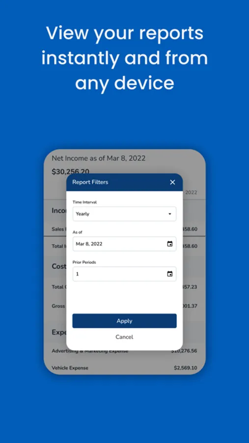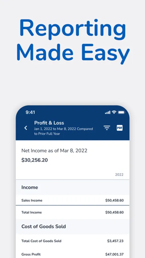 - Preview P&L, balance sheet, unpaid bills, and invoice reports