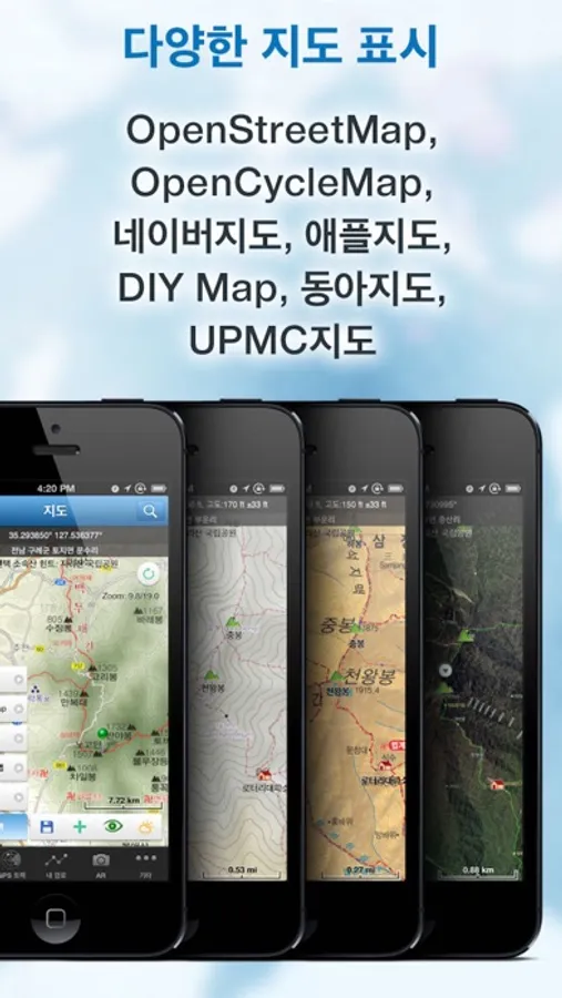 ・오픈맵 지원(OpenStreetMap, OpenCycleMap)