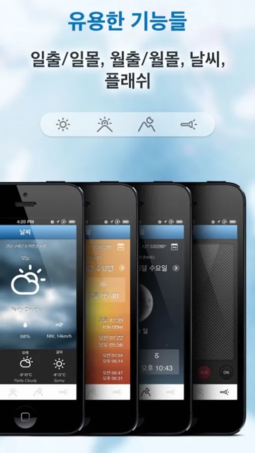 ・주간(4일간) 날씨, 온도, 습도, 바람 표시