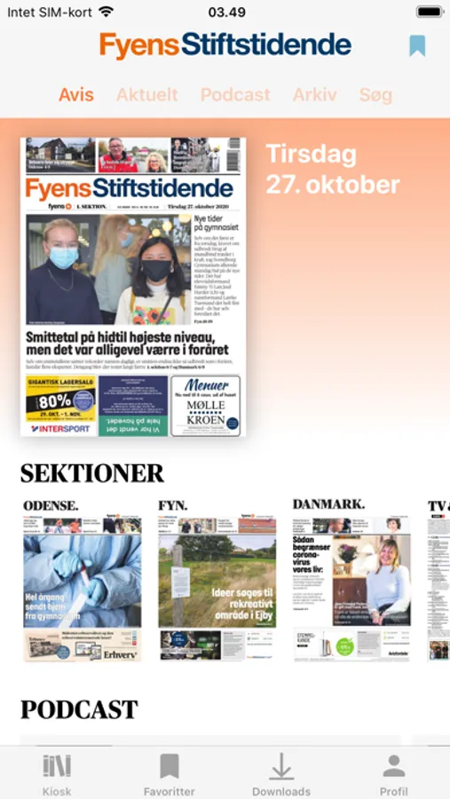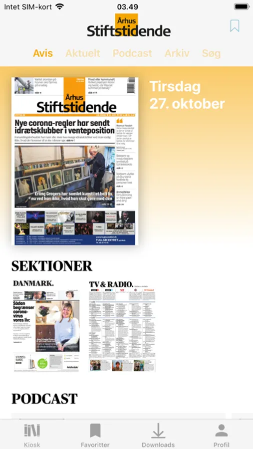 De 15 dagblade, aktuelle nyheder og størsteparten af podcasts kræver abonnement.