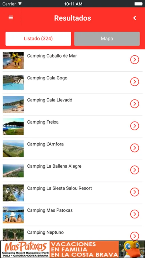 Guía de camping de España. Incluye 1100 campings (95% de los campings) con sus datos, tarifas y servicios. Búsqueda por cercanía. Ofertas de última hora, reservas, campings recomendados y relatos sobre viajes.