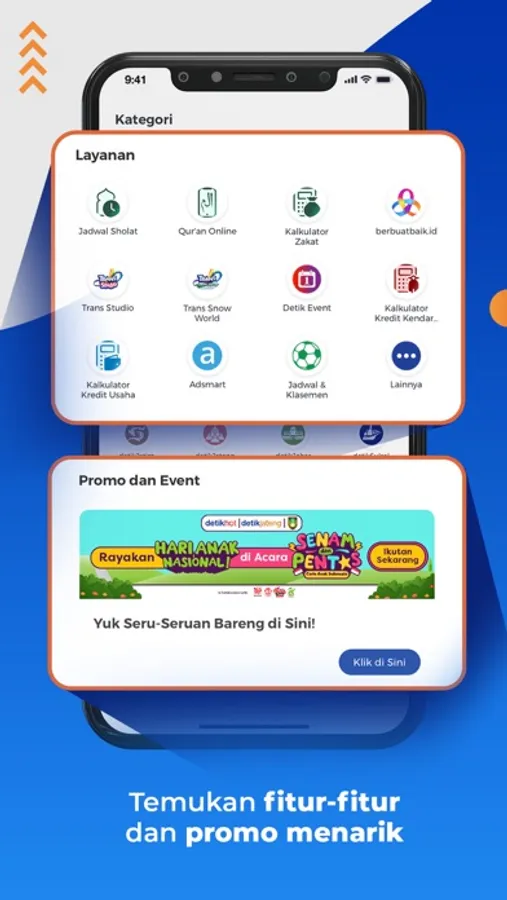 detikcom app has innovated beyond providing the latest news by including a variety of services to ease transactions like purchasing Trans Studio or Trans Snow World tickets and to get information on the latest events and promos.