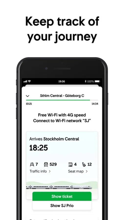 Buy train tickets, keep track of your journey and collect points when travelling with SJ.
