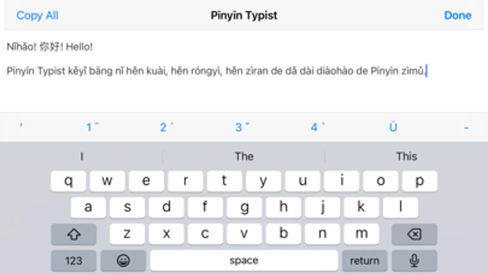 Pīnyīn Typist was the first iOS Pīnyīn typing app, and it’s still the best, especially for typing more than a word or two of Pīnyīn.
