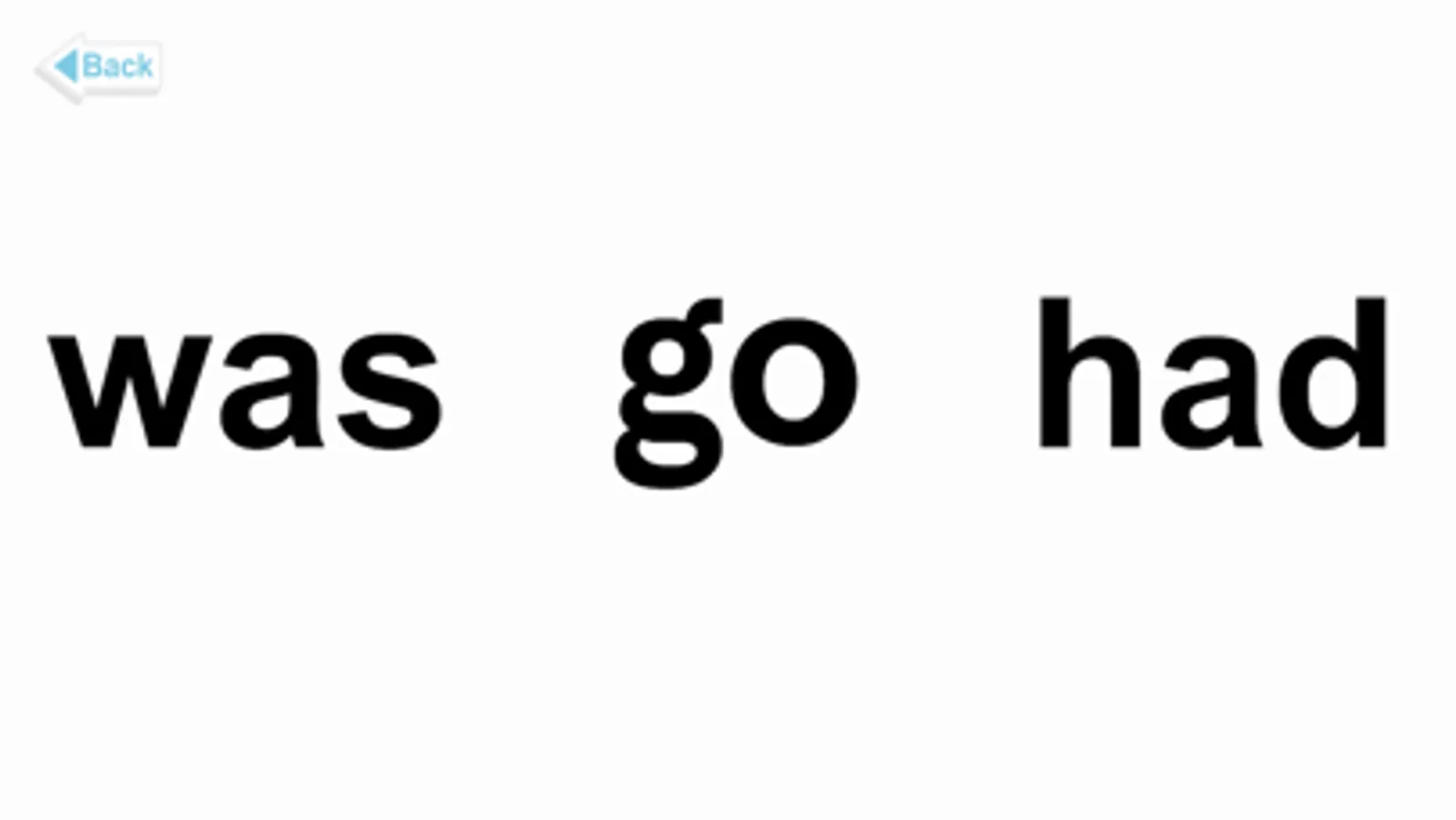 Three sight words appear on screen. The narrator calls out the name of a sight word, and when your child taps the correct sight word it transforms into the character from the award-winning Meet the Sight Words 2 DVD. Large sight word characters make it easy for little fingers to tap, and fun celebratory music in each scene encourages them to play over and over again!