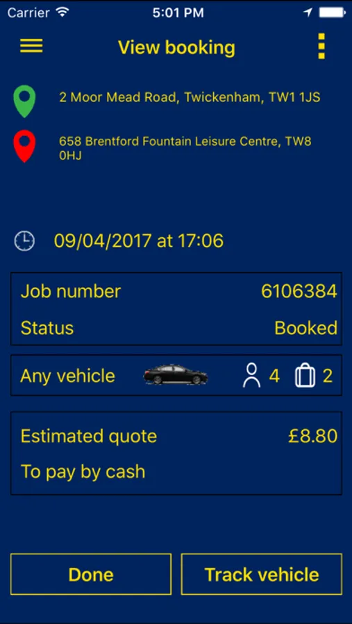 • Booking history and charges can be viewed at any time and email receipts are sent automatically upon completion of your journey.