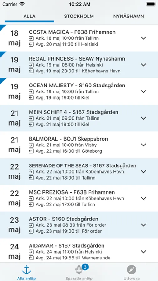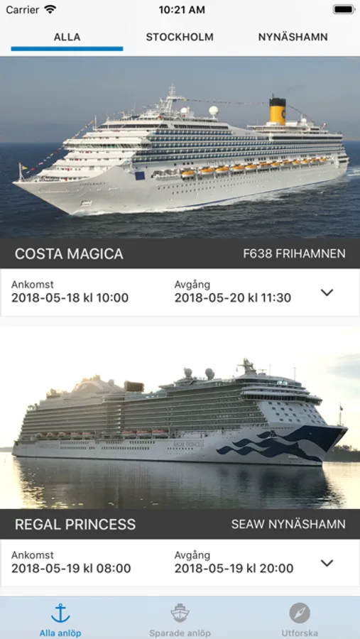 The Cruise Stockholm app shows cruise ships calling Stockholm and Nynäshamn. You will also find useful links to websites that guide you during your stay.