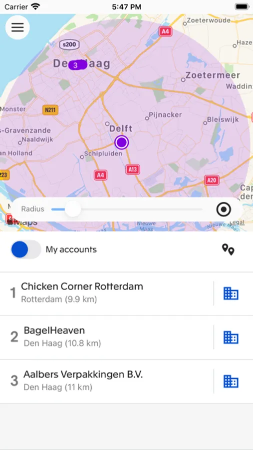 - View accounts that are near by your current location