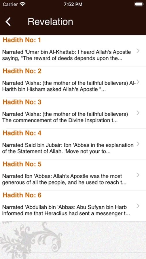 •Ability to swipe back and forth to read next, or previous Hadith.
