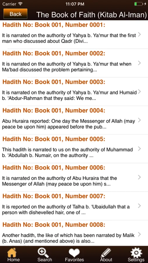 •Ability to bookmark Hadiths to keep track of your last read Hadith so you can simply go to that Hadith and continue from there.