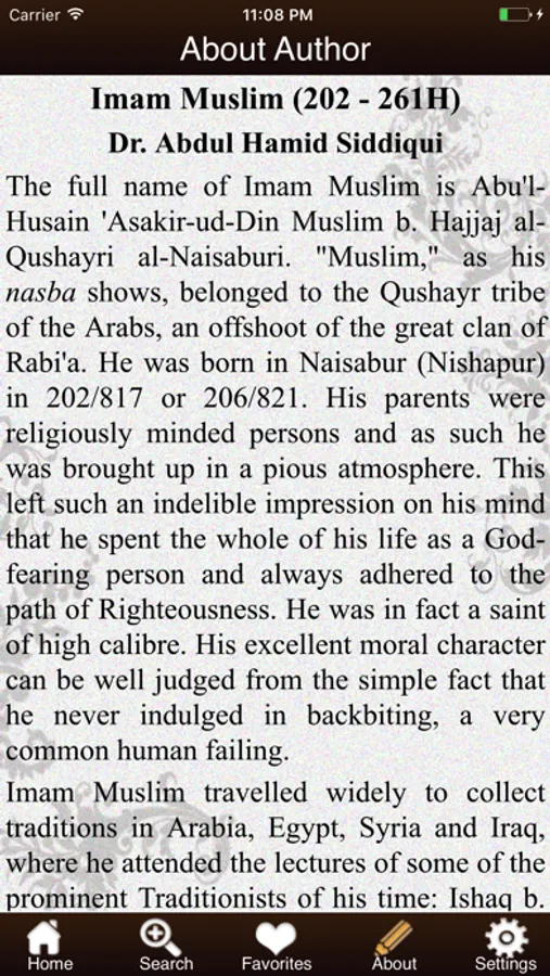 Sahih Muslim is known as the one of world's most authentic source of Islamic Hadiths. This app contains this collection of Hadiths in their certified and authentic English translation. You can view Hadiths by specific chapters, search for a particular Hadith, take notes for a Hadith for future reference, bookmark any of them as favorite for future reading, and share them from the App through email, FaceBook and Twitter.