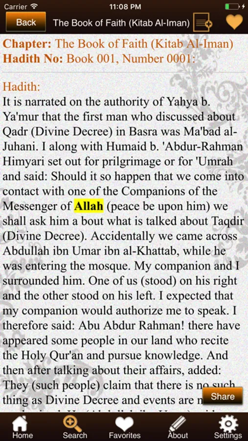 •Ease of maintain favorites list by marking any Hadith as favorite.