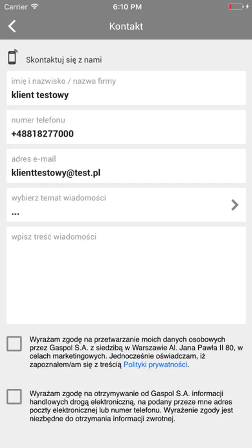 Aplikacja skierowana jest do klientów firmy GASPOL. Kontrahenci otrzymują dostęp do faktur oraz do informacji na temat aktualnych rozliczeń. Dostępna jest również historia zakupów. Klienci wyposażeni w zbiornik z gazem LPG mogą składać on-line zamówienia dostawy. Klienci oferty telemetrycznej otrzymują informację o poziomie napełnienia zbiornika. Wykresy sprzedaży i zużycia teraz dostępne również dla klientów kupujących gaz ziemny oraz energię elektryczną.