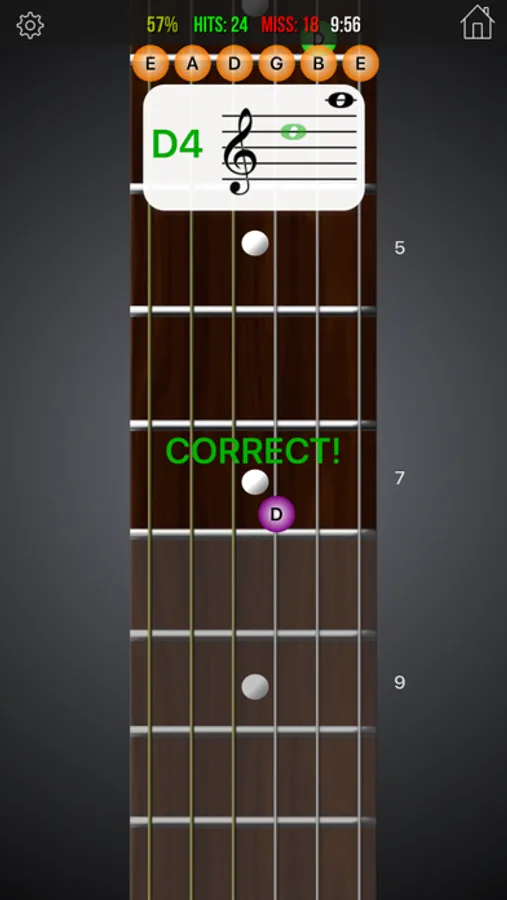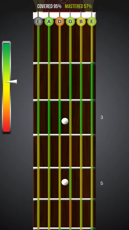 - Visualize your progress on the fretboard; statistics are kept for every fret.