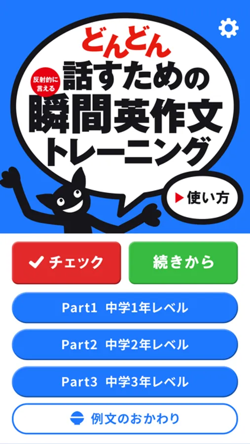 本アプリは「瞬間英作文トレーニング」を最も効果的に行える機能を盛り込み、またお好みに応じて表示・音声のカスタマイズもできるようになっています。