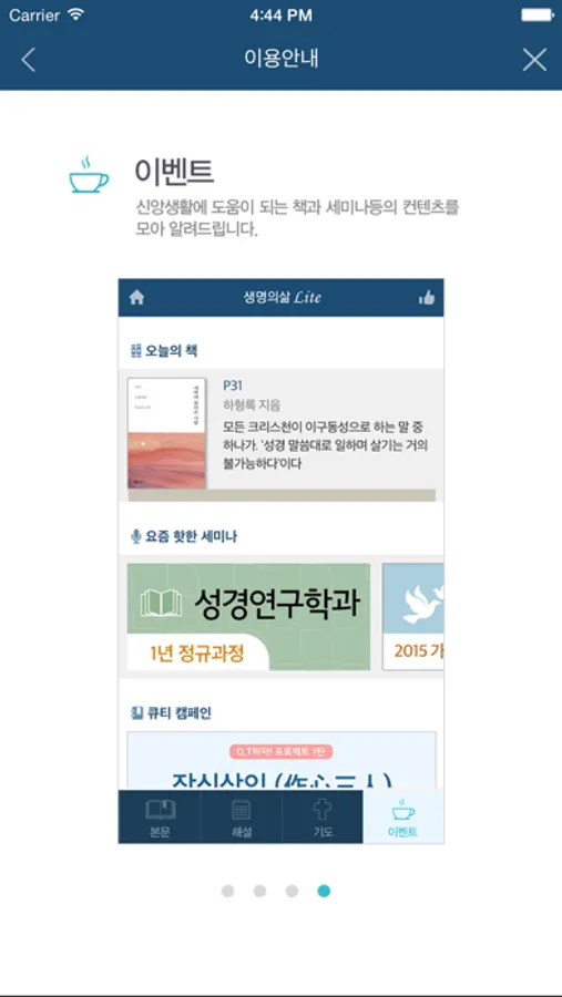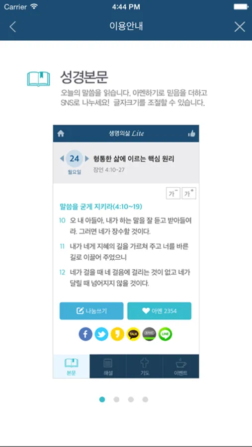 ① 하루 큐티만 제공하는 광고형 앱입니다.