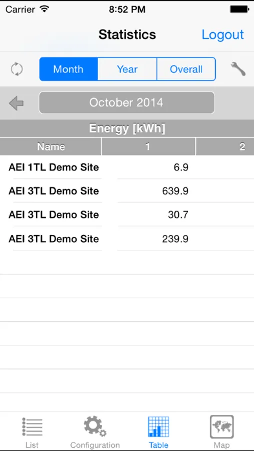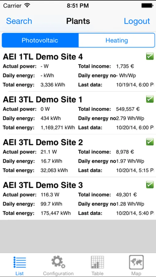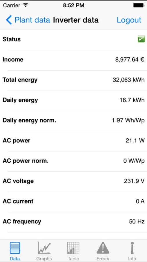 with information on the power output, generated